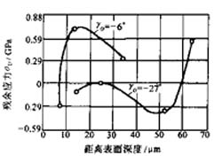 進(jìn)給量增加時,工件已加工表面上的殘余拉英里及殘余應(yīng)力層深度都將隨之增加(見圖3-9)。