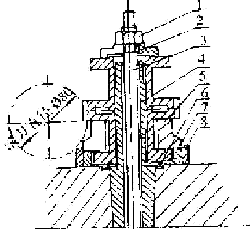 1.螺母 2.開口墊 3.拉桿 4.芯棒 5.開口套 6.底墊 7.內(nèi)定位套 8.外定位套