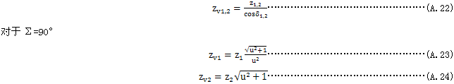 按式(A.37)與式(A.38)算出的當(dāng)量圓柱齒輪的重合度,對承載能力計算是重要的。但上述重合度可能偏離按錐齒輪實際尺寸算的重合度。