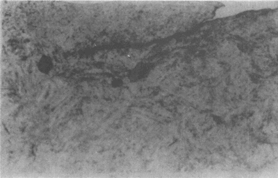 大齒輪齒面的初期點蝕。點蝕密度最大區(qū)與表面載荷最高區(qū)相一致。