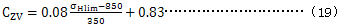 根據(jù)14.2中的規(guī)定,速度系數(shù)ZV是考慮節(jié)點線速度對齒面疲勞(點蝕)強度的影響。圖4中的速度系數(shù)曲線是節(jié)點線速度配對齒輪中較軟齒輪材料σHlim的函數(shù)。ZV­可用式(18)和式(19)計算,公式和圖4中的曲線相一致。