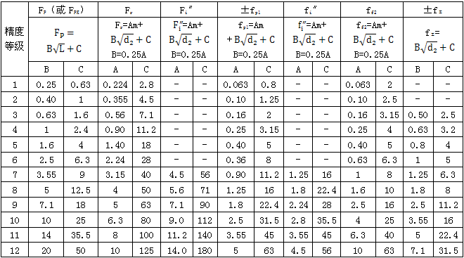 注:①當三個公差組的精度等級不同時,按量高精度等級確定公差。