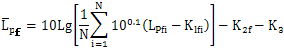 LPfi——第i測(cè)點(diǎn)的頻帶聲壓級(jí),dB;