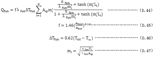 對(duì)于自油對(duì)流與風(fēng)冷的散熱筋片表面(A­fin=Aair):