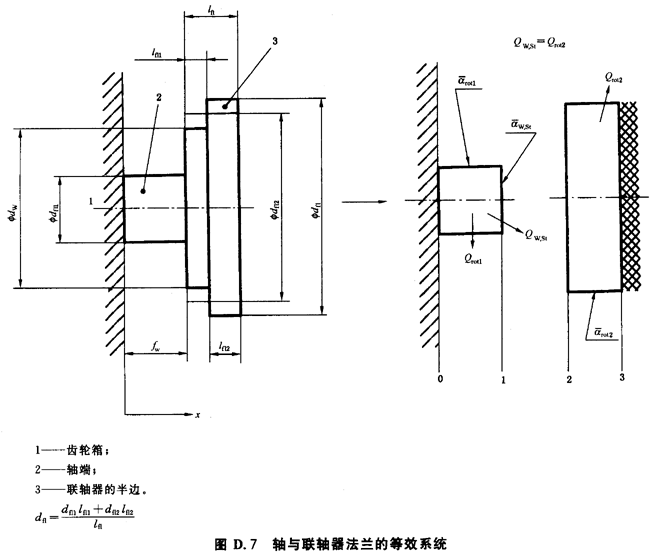 橫截面積Aq,sh與Aq,fl根據(jù)當(dāng)量直徑dsh和dfl分別計(jì)算(見圖D.7)。相當(dāng)于從軸到聯(lián)軸器的熱流的表面熱傳導(dǎo)系數(shù)α*sh,face由以下關(guān)系式計(jì)算: