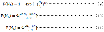 9.2在未知試驗齒輪的壽命分布函數(shù)時,一般采用二參數(shù)威布爾分布、對數(shù)正態(tài)分布或正態(tài)分布進(jìn)行分布檢驗,確定分布類型。三種分布函數(shù)分別為: