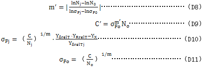 式中:Nj、σFj、YδrelTj的下標(biāo)j表示靜強度時的值,見圖D1。
