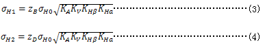 小輪和大輪的計(jì)算接觸應(yīng)力σH1,σH2分別按下述兩式確定: