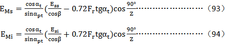 對量柱測量齒距(M值)偏差的測量結(jié)果ΔEM應(yīng)用設(shè)計圖樣規(guī)定的量柱測量距極限偏差EMs、EMi對其進(jìn)行評定。當(dāng)設(shè)計圖樣未作規(guī)定時,應(yīng)將圖樣規(guī)定的齒厚極限偏差Ess、Esi按公試(91)、(92),(93),(94)換算為EMs、EMi;也可以將測得的ΔEM按公試(95),(96)(97),(98)換算為ΔEss、ΔEsi,用Ess、Esi對其進(jìn)行評定。