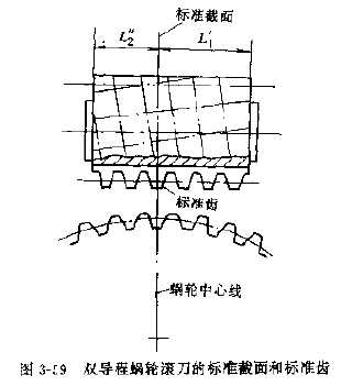 3)滾刀標(biāo)準(zhǔn)截面兩側(cè)的長度,應(yīng)根據(jù)工作蝸桿標(biāo)準(zhǔn)截面 兩側(cè)的有效長度來確定。