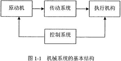一般而言,機(jī)械是由原動(dòng)機(jī)與若干機(jī)構(gòu)組合而成的系統(tǒng),稱為“機(jī)械系統(tǒng)”。按照各組成環(huán)節(jié)的功能劃分,機(jī)械系統(tǒng)的基本結(jié)構(gòu)如圖1-1所示。
