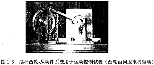 姚燕安作了凸輪機(jī)構(gòu)的主動(dòng)控制的研究以及凸輪機(jī)構(gòu)與伺服控制系統(tǒng)的集成研究,基于以最佳控制理論導(dǎo)出改善凸輪從動(dòng)件系統(tǒng)運(yùn)動(dòng)特性以及抑制其殘余振動(dòng)的轉(zhuǎn)速軌跡的設(shè)計(jì)方法,其實(shí)驗(yàn)系統(tǒng)如圖1-6所示,由伺服電機(jī)驅(qū)動(dòng)擺動(dòng)從動(dòng)件平面凸輪機(jī)構(gòu)。