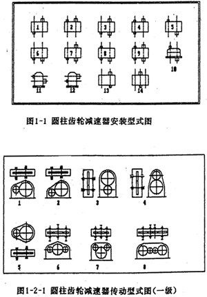 在工礦企業(yè)及運輸、建筑等部門中,圓柱齒輪減速器是一種應用極為廣泛的重要部件。通用型減速器,作為一種工業(yè)產品,規(guī)格較多,產量頗大。與此同時,在使用部門中還經常需要設計一些能滿足特定要求的專用減速器。為適應市場瞬息多變的要求,國家在“七五”期限間,將重型機械基礎件作為24項CAD攻關產品之一,并將減速器作為重型機械基礎件的代表。由西安重型機械研究所(后簡稱西重所)提供的專家系統(tǒng)文本中減速器的類型如下(圖1-1、圖1-2-1、圖1-2-2、圖1-2-3)。