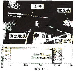硬車是一種“以車代磨”的新工藝,用于某些不適宜進(jìn)行磨削的回轉(zhuǎn)休零件的加工,是一種高效的干切削技術(shù)。在對(duì)氮化硅(Si3N4) 工件進(jìn)行硬車時(shí).由于該材料有極高的抗拉強(qiáng)度,使任何刀具都很快破損?刹捎眉す廨o助切削,用激光束對(duì)工件切削區(qū)進(jìn)行預(yù)熱(見(jiàn)圖2),使工件材料局部軟化 (其抗拉強(qiáng)度由750MPa降至400MPa),則可減小切削阻力30%~70% ,刀具磨損可降低80%左右,干切削過(guò)程中的振動(dòng)也大為減。蟠筇岣吡瞬牧锨谐剩垢汕邢鞯靡皂樌M(jìn)行。