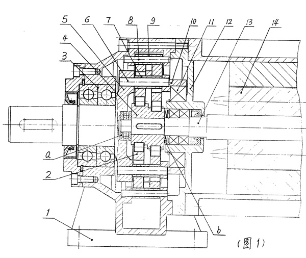 本發(fā)明擺線減速機(jī)涉及傳動(dòng)技術(shù)領(lǐng)域,是現(xiàn)代擺線減速機(jī)的重大改進(jìn)。其主要特征在于:(一)機(jī)座與針齒殼融為一體,或者針齒殼置于機(jī)座內(nèi)腔;(二)輸出機(jī)構(gòu)由輸出軸、柱銷及均載環(huán)組成,兩側(cè)由軸承支承,使擺線輪與偏心軸承處于兩軸承之間。本發(fā)明比之日本住友6000系列擺線減速機(jī)軸向尺寸縮短20~34%,外形縮。丁常矗ィ戎拢樱牛子昌X面減速機(jī):軸向尺寸縮短20~45%,重量減輕25~35%,更適宜與主機(jī)配套。