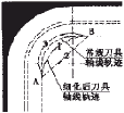 圖9 附加走刀路徑細(xì)化示意圖 采用圓角處刀具路徑細(xì)化方案,可以有效的保持穩(wěn)定切削,減小因切削力突變而引起的加工變形和可能發(fā)生的切削振動(dòng),提高了零件的加工質(zhì)量。 當(dāng)然,在圓角切削力實(shí)驗(yàn)中,我們還發(fā)現(xiàn),逆銑時(shí)切屑厚度是由薄到厚,由于刃口尺寸效應(yīng),在刀刃剛接觸工件時(shí),后刀面與工件之間的摩擦較大,易于引起振動(dòng),拐角處會(huì)出現(xiàn)嚴(yán)重的斜向振紋。順銑則剛好相反,雖然順銑的切削力稍大于逆銑時(shí)的切削力,但是在切削拐角處時(shí),不會(huì)產(chǎn)生明顯的振紋。不過順銑時(shí)切屑厚度是由厚到薄,對(duì)工件和刀具的沖擊力較大,在加工時(shí)盡可能減少刀具的懸伸長(zhǎng)度和增加工件的剛性。 4 其它高效銑削加工技術(shù) 進(jìn)給量的局部?jī)?yōu)化法與刀具偏擺數(shù)控補(bǔ)償技術(shù)作為數(shù)控加工前期的工藝優(yōu)化和質(zhì)量保證研究,分別從抑制加工變形和有效補(bǔ)償加工變形的思想出發(fā),二者均應(yīng)用了有限元技術(shù)來建立零件的加工變形模型,并分析處理加工過程中的加工變形狀況。 進(jìn)給量的局部?jī)?yōu)化方法是針對(duì)恒定進(jìn)給量提出的。因?yàn)榱慵骋槐砻嫔细鞑糠值膭傂约扒邢髁Φ拇蟆 ⌒〔煌? 受力變形情況也不一樣。利用有限元分析軟件進(jìn)行分析后得到變形分布圖, 可以看到有些位置的變形大, 有些位置的變形小。如果采用恒定的進(jìn)給量, 為了保證變形量最大的位置能達(dá)到質(zhì)量要求,整個(gè)表面就得全部采用很小的進(jìn)給量, 而進(jìn)給量的局部?jī)?yōu)化就是在變形小的地方采用大進(jìn)給量,而在變形大的地方采用小的進(jìn)給量。這樣可以在保證變形量的同時(shí), 提高效率, 減少成本。實(shí)驗(yàn)研究表明, 采用該方法在提高加工質(zhì)量的同時(shí)可以節(jié)省約60%的加工時(shí)間。 刀具偏擺數(shù)控補(bǔ)償技術(shù),是在有限元分析基礎(chǔ)上, 根據(jù)模擬仿真加工變形的大小,在數(shù)控編程時(shí)讓刀具在原有走刀軌跡中按變形情況附加補(bǔ)償運(yùn)動(dòng),補(bǔ)償因切削力作用而產(chǎn)生的變形。對(duì)側(cè)壁加工,通過偏擺刀具進(jìn)行補(bǔ)償;對(duì)腹板加工,則補(bǔ)償軸向切深。通過數(shù)控補(bǔ)償, 可以將因變形而產(chǎn)生的殘余材料切除, 一次走刀即可保證薄壁件側(cè)壁或腹板精度,從而達(dá)到高效、經(jīng)濟(jì)、優(yōu)質(zhì)加工薄壁零件的目的。 5 結(jié)論 以上介紹和分析了當(dāng)今國(guó)內(nèi)外有關(guān)薄壁結(jié)構(gòu)的高效銑削加工技術(shù)研究狀況。目前,國(guó)內(nèi)外對(duì)于薄壁結(jié)構(gòu)的加工變形研究主要在靜態(tài)分析方面,而對(duì)于薄壁結(jié)構(gòu)的加工變形研究的動(dòng)態(tài)分析還不成熟。當(dāng)然,對(duì)于薄壁結(jié)構(gòu)的高效銑削加工技術(shù)研究,可以從機(jī)床、夾具、刀具、工件以及切削參數(shù)與走刀路徑等不同方面進(jìn)行優(yōu)化分析。 隨著高速切削技術(shù)與有限元技術(shù)的進(jìn)一步發(fā)展與完善,數(shù)控加工前期的工藝優(yōu)化和質(zhì)量保證研究工作日顯突出。利用理論分析和實(shí)驗(yàn)相結(jié)合建立工件變形模型;通過模擬分析替代大量的實(shí)驗(yàn)研究工作來優(yōu)化切削參數(shù)與走刀路徑;根據(jù)批量生產(chǎn)的實(shí)際需要研究、開發(fā)新型刀具、夾具,努力提高機(jī)床的性能。薄壁結(jié)構(gòu)的高效銑削加工技術(shù)定會(huì)得到較大的發(fā)展,薄壁結(jié)構(gòu)的應(yīng)用會(huì)更加廣泛。