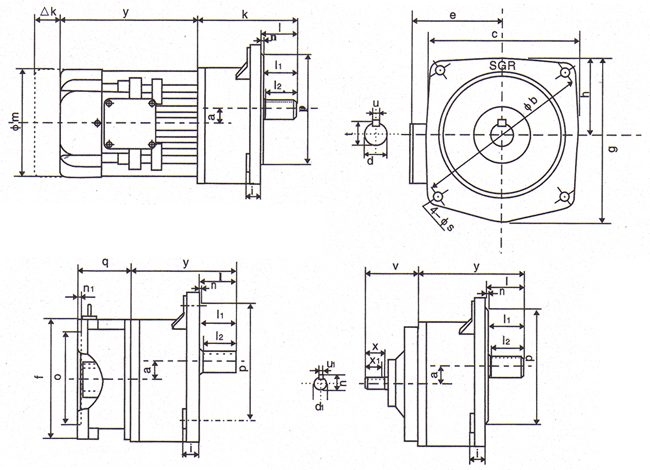 GL(H)F小齒輪減速電機(jī)安裝尺寸