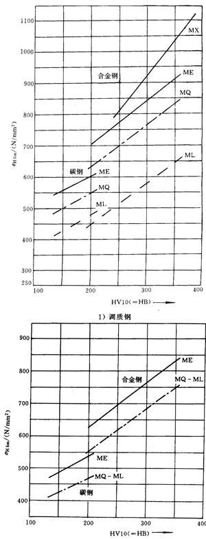 圖24b   調(diào)質(zhì)處理的碳鋼、合金鋼及鑄鋼的σFlim和σFE