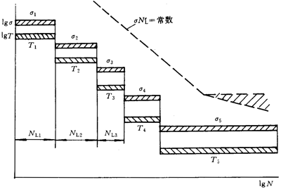 式中:σ1n, σ2n——S-N曲線上點(diǎn)1、點(diǎn)2處的應(yīng)力,N/mm2;