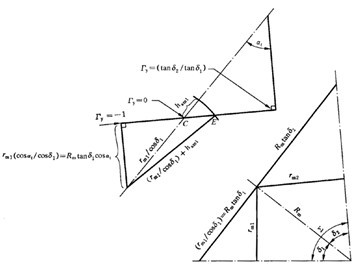 對(duì)于改寫的運(yùn)動(dòng)學(xué)公式作如下假充55這些假設(shè)對(duì)曲率半徑作了適當(dāng)?shù)慕,但不包括用?dāng)量圓柱齒輪副代替錐齒輪。)[43],見圖A.2。