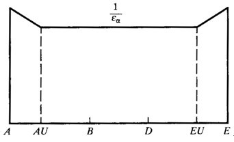 如果齒廓進(jìn)行修形,修形量的設(shè)計(jì)和加工應(yīng)滿足要求的載荷分配,如圖6。小輪和大輪的最佳齒頂修緣量可近似表達(dá)為:Ceff= ……………………(B.1)