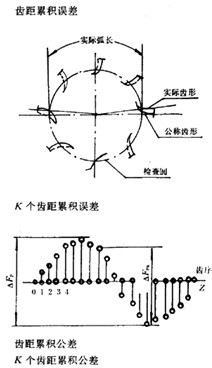 與檢查圓*上任意兩個同側齒面間的實際弧長與公稱弧長之差的最大差值