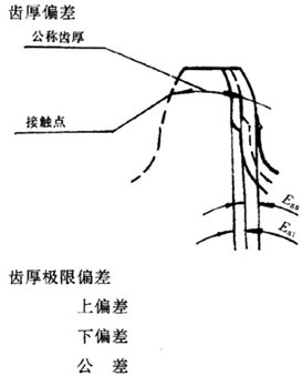 接觸點所在圓柱面上,法向齒厚實際值與公稱值之差。