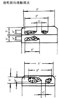 沿齒長方向:接觸痕跡的長度 (扣除超過模數(shù)值的斷開部分C)與工作長度 之比的百分數(shù),即