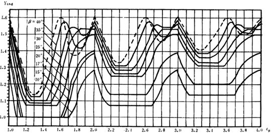 接觸跡系數(shù)是考慮重合度尾數(shù)Δε對(duì)輪齒應(yīng)力的影響系數(shù)。當(dāng)Δε較大時(shí),在相應(yīng)于Δε的齒寬部分,即使在最不利的情況下,也有部分接觸跡參與承擔(dān)載荷,使輪齒應(yīng)力有所下降。推薦Δε=(0.25~0.4)。KΔε值可按Δε由圖3查取。當(dāng)齒端修薄時(shí),應(yīng)根據(jù)減去齒端修薄長度后的有效齒長部分的Δε來查圖(當(dāng)20°<β°<25°時(shí),采用插值法查。。
