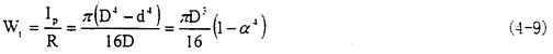 ,導(dǎo)出的公式中引進(jìn)了截面極慣性矩和抗扭截面系數(shù),在空心軸的情況下有