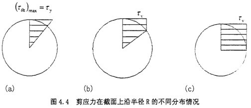 此時(shí)剪應(yīng)力在截面上沿半徑R的分布情況見(jiàn)如圖4.4(b)所示。