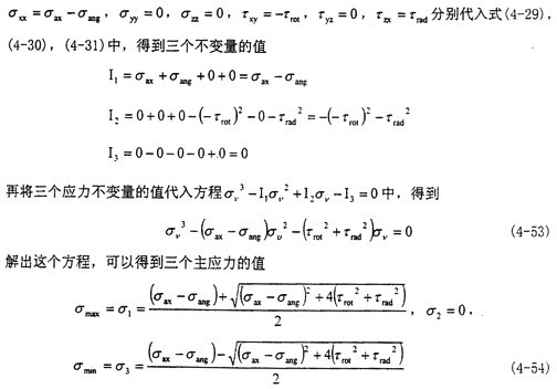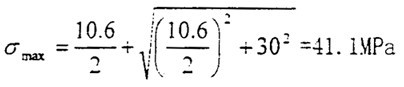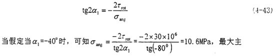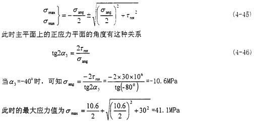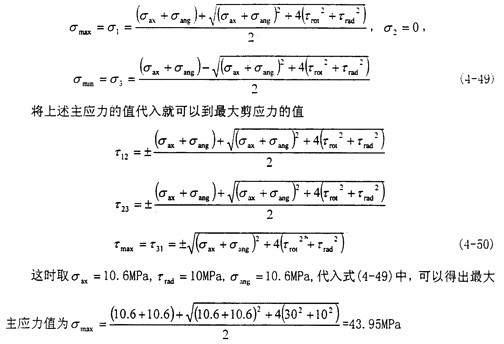 這時(shí)取σax=10.6MPa,τrad=10MPa,代入式(4-56)中,可以得出最大主應(yīng)力值為