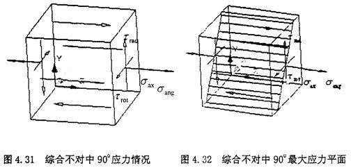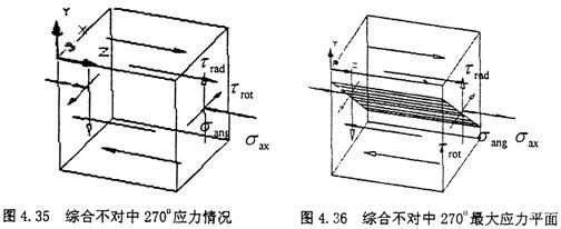 由式(4-39)可知,最大應(yīng)力平面剛好在垂直于正弦矢量相加的方向。這與徑向不對(duì)中90°位置的情況有些相似。
