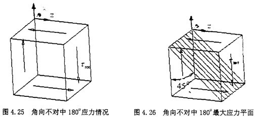 由圖示可知,此時(shí)單元體的受力其實(shí)是屬于純剪切狀態(tài),只是此時(shí)的剪切應(yīng)力為τrad與τrot的方向相同,而在1800時(shí)方向相反,所以有