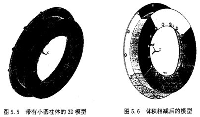 進(jìn)行體相減,生成系列小孔。主要用到Subtract命令,先選擇兩上大面,然后選上所有的小圓柱體。最后有Replot命令生成新圖形。結(jié)果如圖5.6所示。