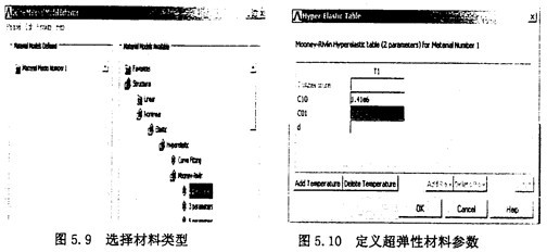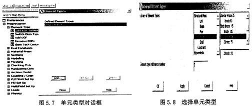 考慮到分析橡膠材料所能用到的單元,選擇Main Menu>Preprocessor>Element type>Add/Edit/Delete,在出現(xiàn)的對話框中,單擊“Add”,如圖5.7所示。這時又出現(xiàn)一個“Library of Element Type”對話框,在左面的列表欄中選擇“Structural Solid”,在其右面的列表欄中選擇“2Onode186”,單擊0K按鈕,如圖5.8。再在單元對話框中單擊Close按鈕關(guān)閉對話框。