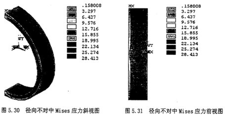Mises應(yīng)力云圖中可以看出,最大應(yīng)力出現(xiàn)在900位置。在外橡膠圓環(huán)外圈的應(yīng)力比內(nèi)圈的應(yīng)力要大。