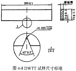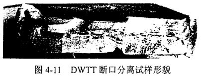 圖4-8和圖4-9分別表示DWTT的試樣標(biāo)準(zhǔn)和斷口形貌。