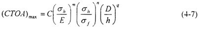 (CTOA)c可以通過(guò)攝像機(jī)從實(shí)物裂紋擴(kuò)展的照片上觀測(cè)得到,也可同CVN或DWTT實(shí)驗(yàn)建立聯(lián)系。Wilkowski分別建立了基于CVN和DWTT吸收功的(CTOA)c經(jīng)驗(yàn)算法,模型如圖4-15。另一種方法是通過(guò)測(cè)定作用于試件上的總功,從裂紋擴(kuò)展能的角度計(jì)算(CTOA)c。