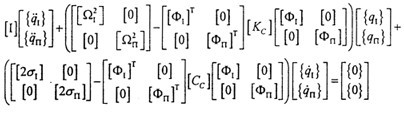 求組合系統(tǒng)的特征值及特征向量,然后可建立組合系統(tǒng)的模態(tài)模型。(不難看出,此處組合結(jié)構(gòu)整體的特征值的數(shù)目由各部件的模態(tài)數(shù)來(lái)確定,而不是由它們的結(jié)構(gòu)幾何坐標(biāo)數(shù)確定的)