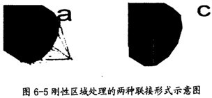 剛性區(qū)域的處理是基于小變形理論,通過(guò)這種處理,單個(gè)構(gòu)件的自由模態(tài)頻率會(huì)上升,只有通過(guò)這種處理可以在ADAMS中進(jìn)行模態(tài)疊加和模態(tài)綜合,得出系統(tǒng)的固有頻率。其處理的方法是根據(jù)構(gòu)件間的不同的運(yùn)動(dòng)副連接形式,用點(diǎn)質(zhì)量單元上的節(jié)點(diǎn)(有時(shí)物體上自己的節(jié)點(diǎn)也可,不一定非要再建立質(zhì)量單元)和實(shí)體上相應(yīng)的節(jié)點(diǎn)進(jìn)行耦合,形成主節(jié)點(diǎn)和從節(jié)點(diǎn)關(guān)系,構(gòu)成剛性區(qū)域。其連接形式如圖6-5,在此圖的連接形式中,a圖的連接形式可以傳遞所有載荷形式,是一種推薦的連接方式;c圖中主節(jié)點(diǎn)僅同單個(gè)從節(jié)點(diǎn)相連傳遞的載荷形式有限,不合適選用。
