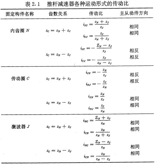 并且ZN應(yīng)是ZJ的整數(shù)倍。當(dāng)式(2.1)取“+ ”號時(shí),推桿減速器為正向結(jié)構(gòu),取“一”號時(shí)為反向結(jié)構(gòu)。