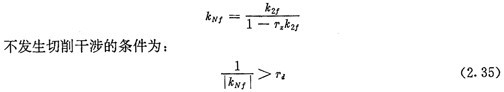 另外,當(dāng)選用半徑為Td的刀具加工內(nèi)齒圈齒廓時(shí),在齒根處可能發(fā)生切削干涉(過渡切削)。同樣由式(2.24)可計(jì)算出曲線H2在對應(yīng)于齒根處的相對曲率kZ 了,齒廓曲線HN在齒根處的相對曲率kNf為: