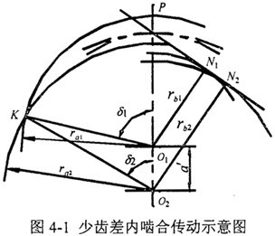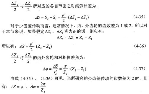變位系數(shù)的確定是少齒差內(nèi)嚙合傳動設(shè)計(jì)的關(guān)鍵。文獻(xiàn)中所述的內(nèi)、外齒輪都按滾齒加工的計(jì)算公式推導(dǎo)出的變位系數(shù)的迭代公式,與內(nèi)齒輪插齒、外齒輪滾齒的實(shí)際加工情況不一致,雖然能夠保證給定的重合度和齒廓不重迭干涉系數(shù)的要求,但是不能保證標(biāo)準(zhǔn)頂隙,而且一般得出的嚙合角也比較大。本章推導(dǎo)了少齒差內(nèi)嚙合傳動實(shí)際加工情況的變位系數(shù)的迭代公式,解決了上述問題。