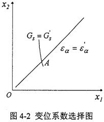 給定初值x1=1.0、x2=2.0,迭代過程及迭代結(jié)果如表4-2所示,給定限制條件下的變位系數(shù)選擇如圖4-4所示,交點(diǎn)A便對應(yīng)著這對齒輪的變位系數(shù)x11.14204,x2=1.40742。