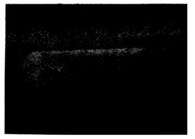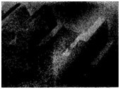 航空齒輪m=3mm,滲碳淬火后磨削,因磨削工藝不當(dāng)造成齒面條狀磨削裂紋(磁化后照像)。