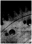 輕微膠合常呈現(xiàn)為在靠近齒頂或靠近齒根的齒面上沿滑動方向極輕微而細(xì)密的傷痕(一條暗帶),有時要借助子顯微鏡才能見到其粘著痕跡。