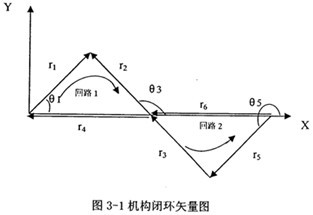 本章所要做的工作就是對(duì)上一章選出來(lái)的二自由度連桿機(jī)構(gòu),進(jìn)行運(yùn)動(dòng)學(xué)分析,初步選定機(jī)構(gòu)的結(jié)構(gòu)參數(shù),分析其輸入輸出速度能否滿(mǎn)足設(shè)計(jì)要求,為以后的動(dòng)力學(xué)分析做依據(jù)。