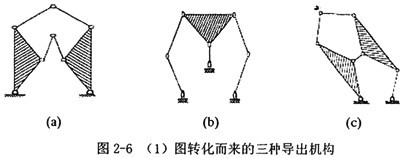 由(1)圖,取不同的構(gòu)件為機(jī)架,經(jīng)過特定化后,可轉(zhuǎn)化為三種導(dǎo)出機(jī)構(gòu),如圖2-6。