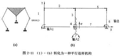 受此啟發(fā),并基于可調(diào)整機(jī)構(gòu)的原理,經(jīng)過適當(dāng)?shù)恼{(diào)整,如圖2-17所示,認(rèn)為圖2-18所示的連桿機(jī)構(gòu)可以滿足設(shè)計(jì)需求。